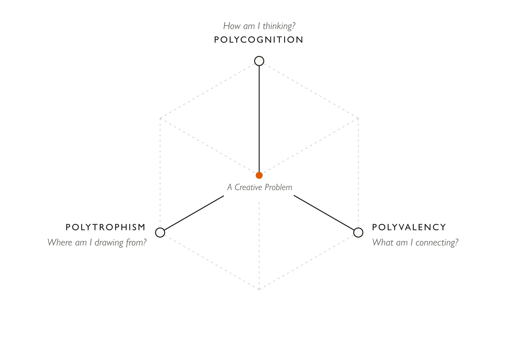 Creativity needs the same upgrade. Creativity for an age of complexity requires more than one mode of thinking, more than one way of connecting ideas, and more than one path to a result. The Poly Framework names what replaces the single-track defaults. Three axes, operating together.